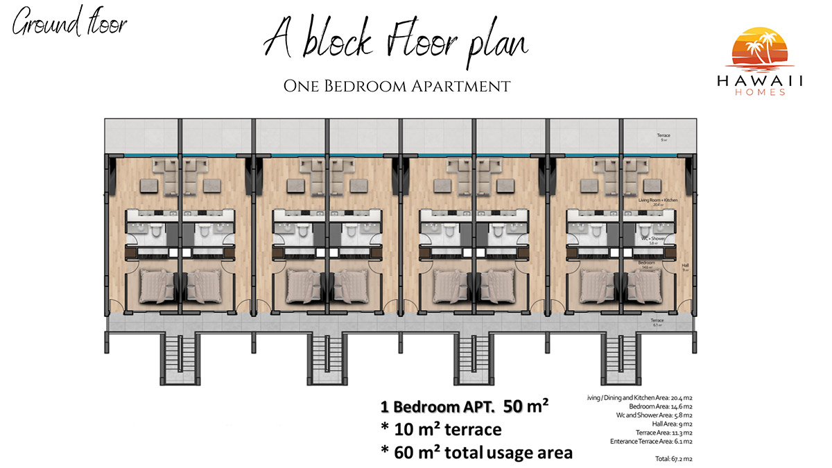 Here are the details of each one of units. You can find the location of units on the site plan.