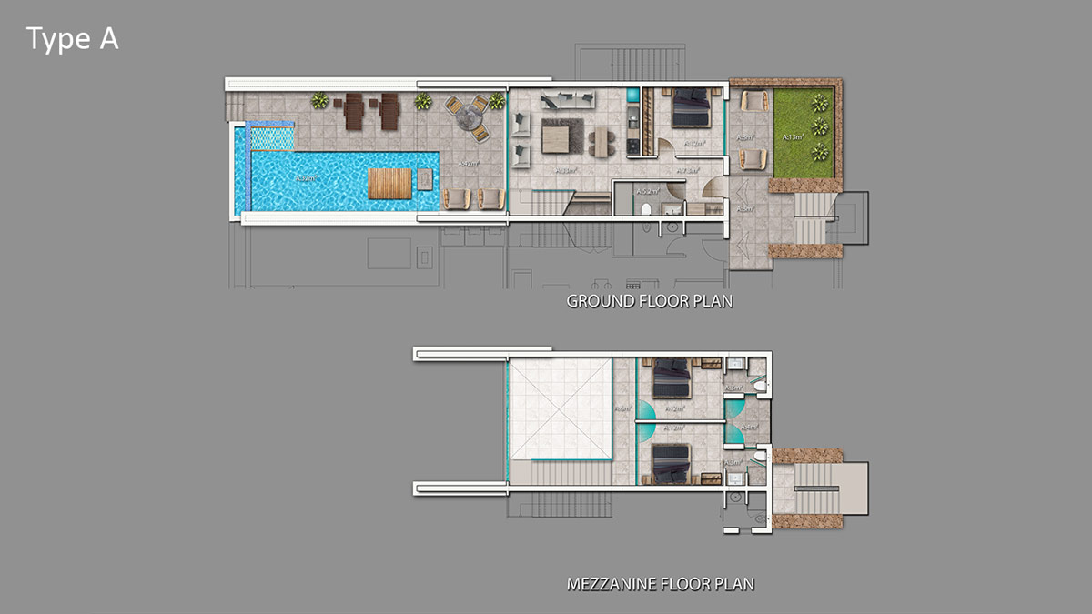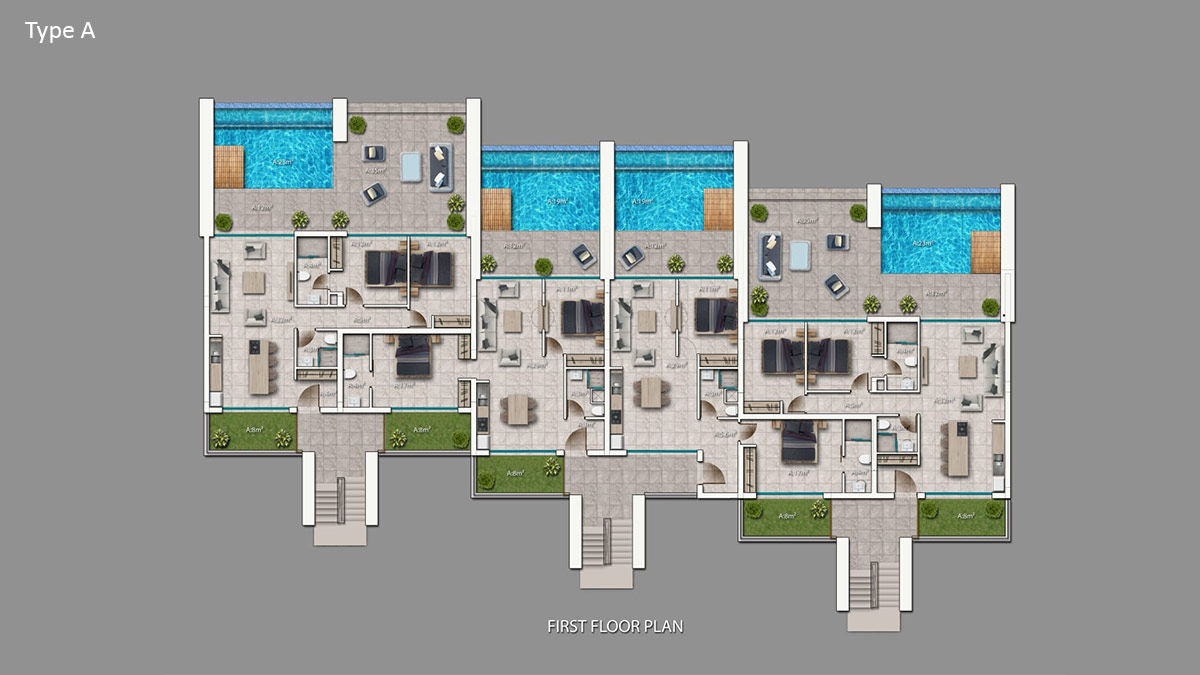 UNITS 701 – Phase I – Type A apartments includes 2+1 penthouse apartments with a private pool and 3+1 garden apartments with a private pool.
