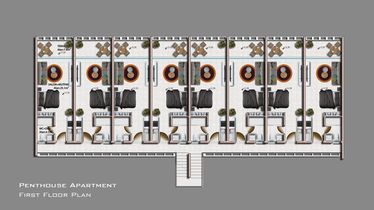 UNITS 701 – Phase II – Type B apartments includes studio penthouse and garden apartments.